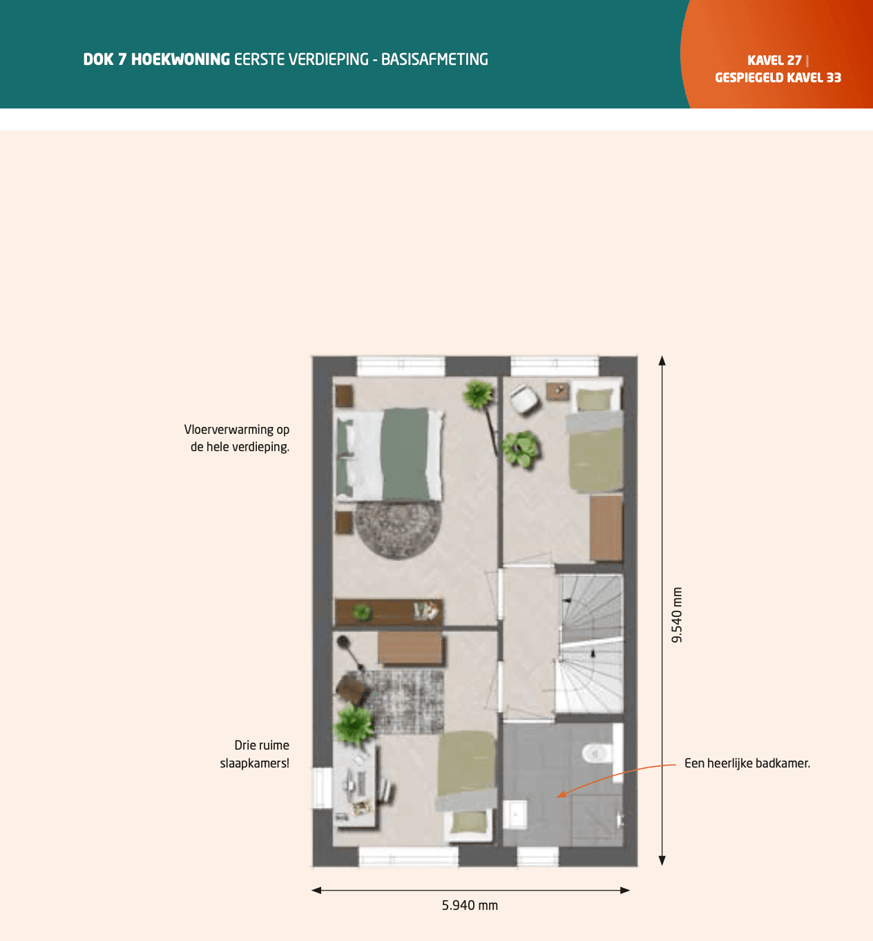 Deze tussenwoning is gelegen op een perceel van circa 134 m2 ingedeeld met een tuingerichte woonkamer en een keuken aan de voorzijde. Indien gewenst kan de woning aan de achterzijde met 1,20 m. of 2,40 m. uitgebouwd worden. Verder beschikt de woning over 3 slaapkamers, een badkamer en op de zolder staan de technische installaties en heeft de mogelijkheid om hier nog 1 slaapkamer te realiseren.