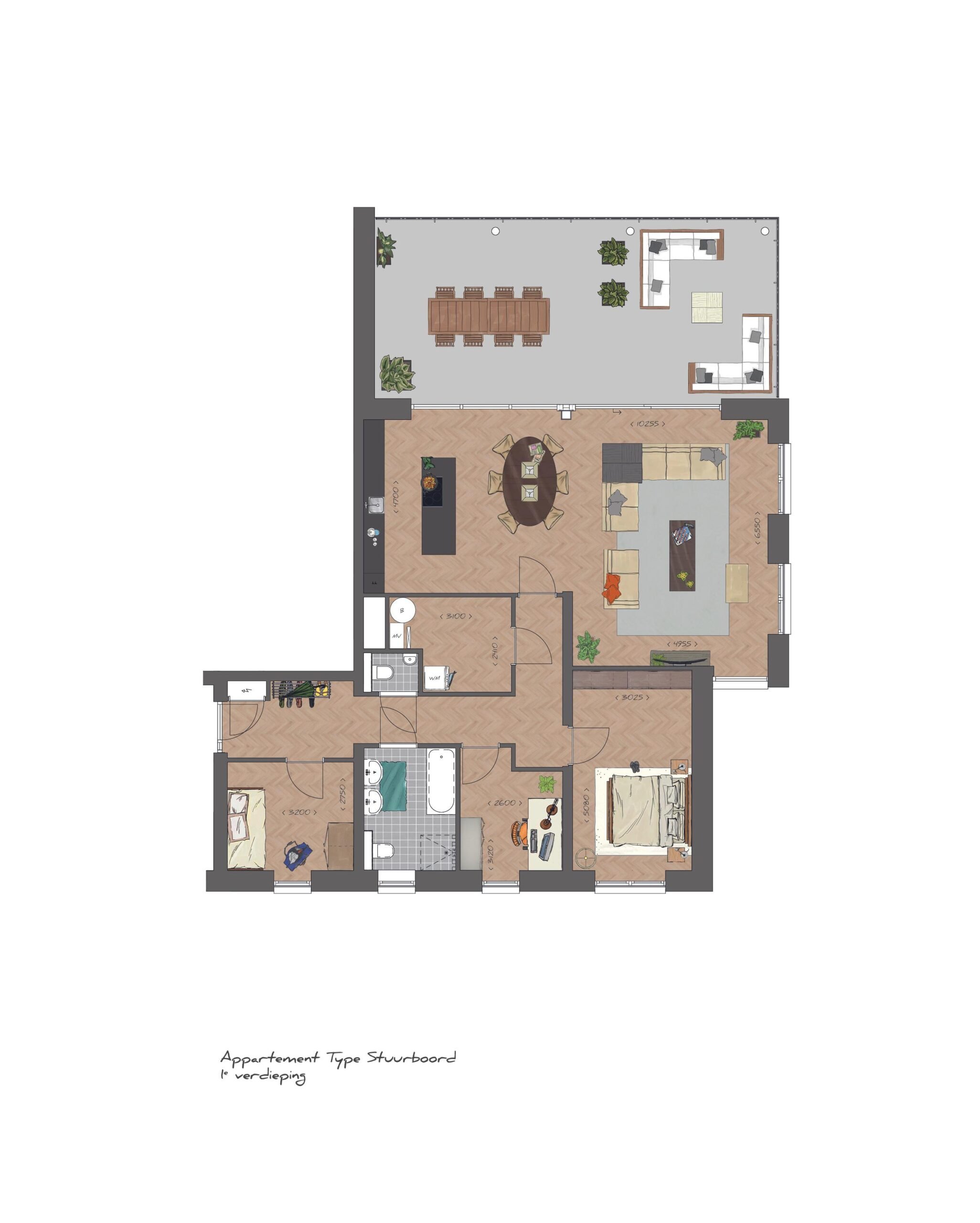 De tweede tot en met de achtste woonlaag van het appartementengebouw hebben dezelfde woonruimteverdeling. Op elke woonlaag bevinden zich drie appartementen met de woningtypes Bakboord, Gangboord en Stuurboord. Alle woonlagen zijn vanuit de parkeergarage en de entree zowel met de lift als trap bereikbaar. Elk appartement beschikt over een uniek uitzicht op de omgeving.