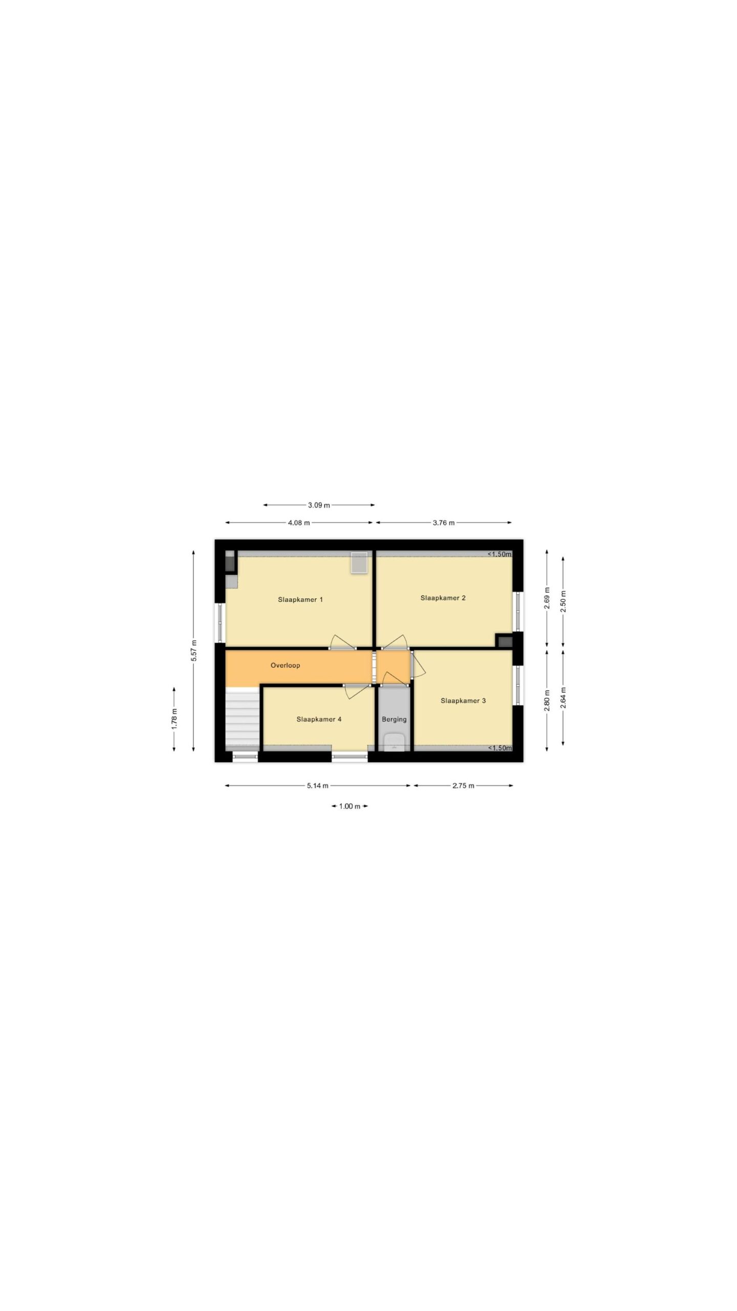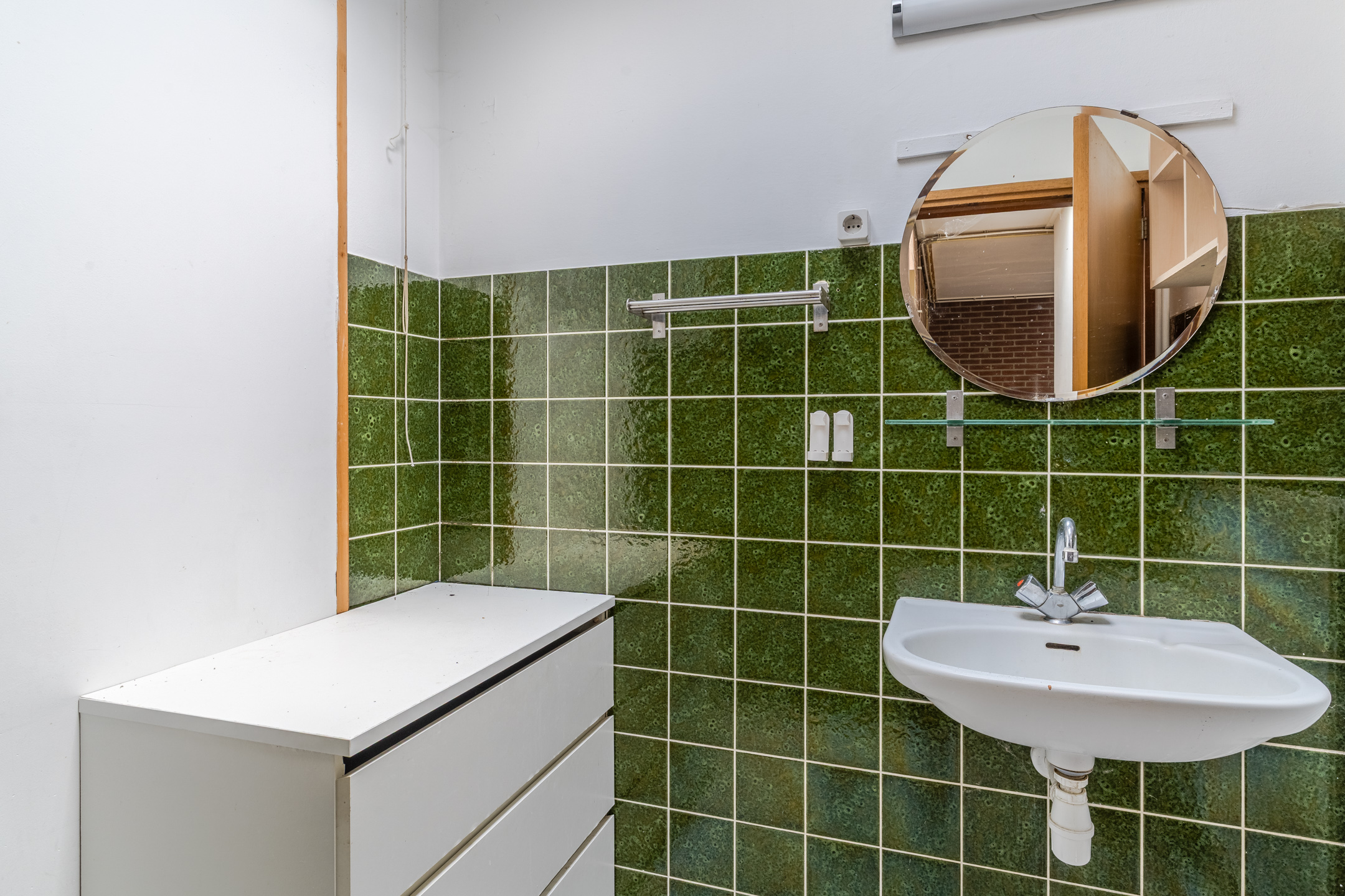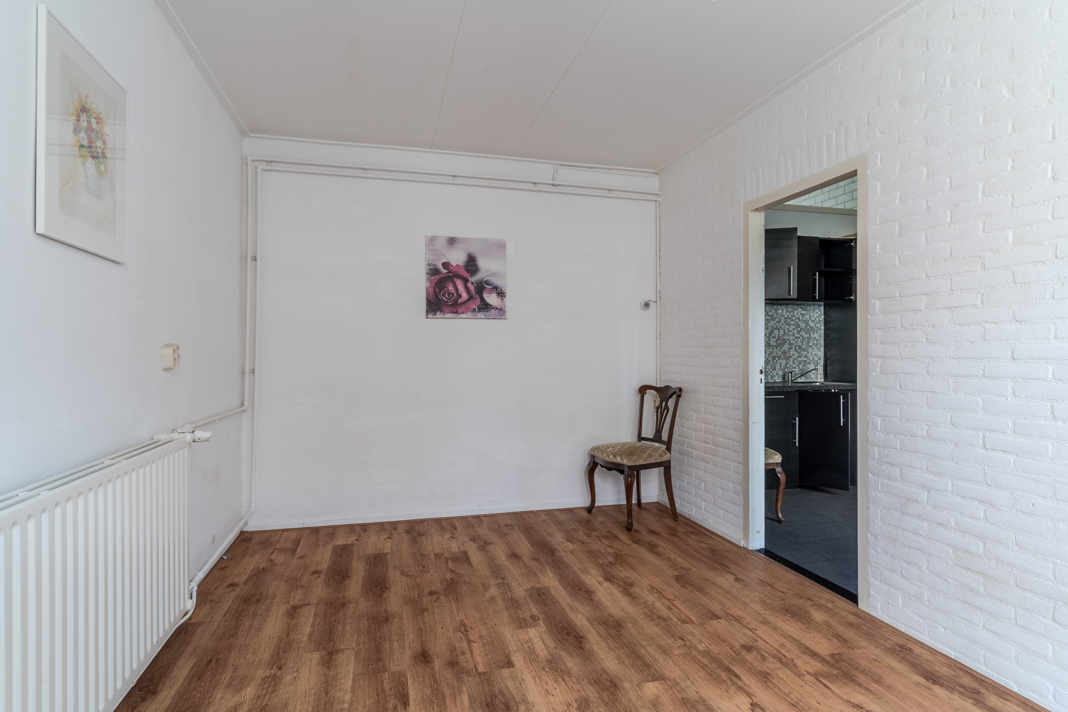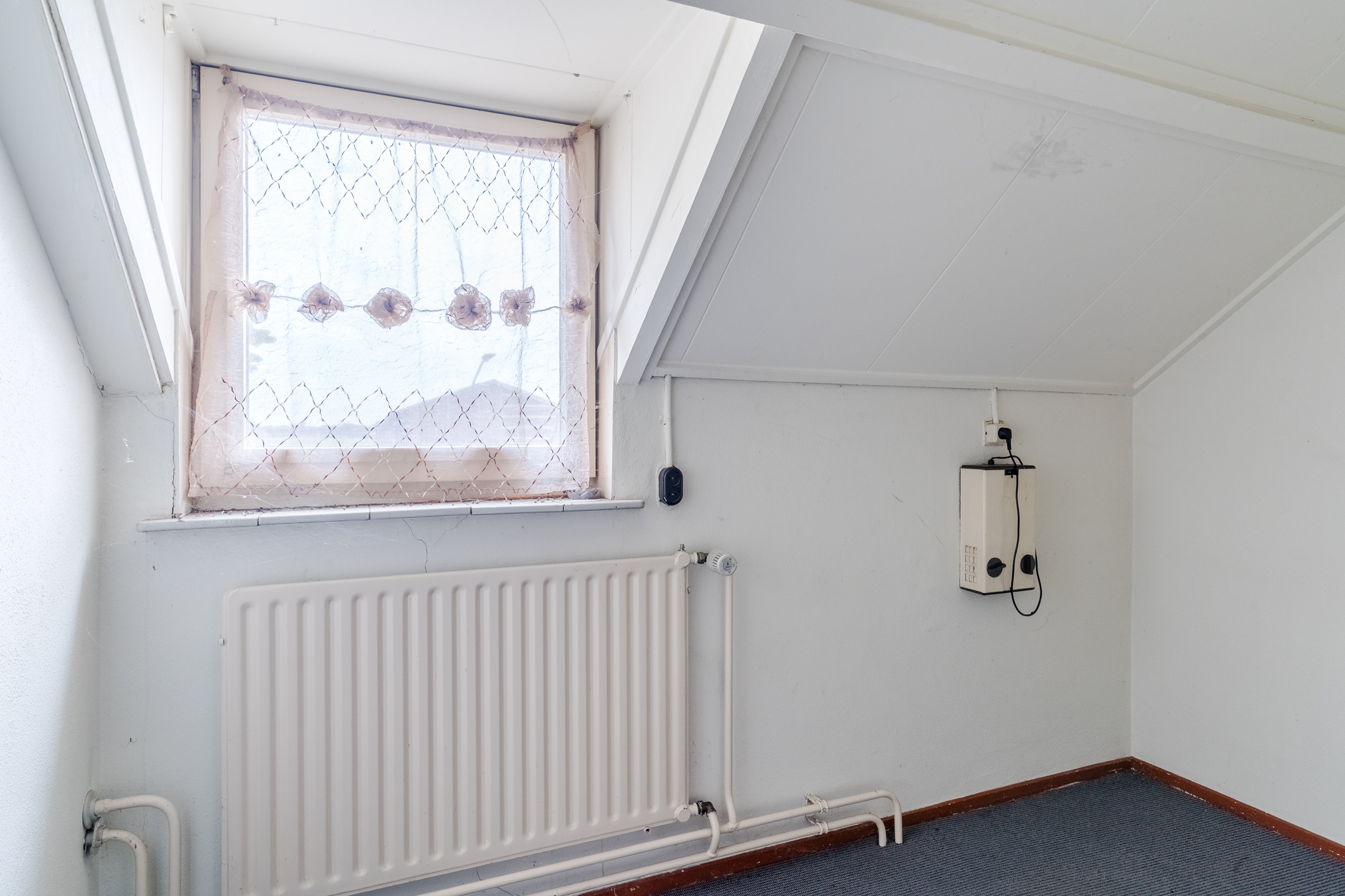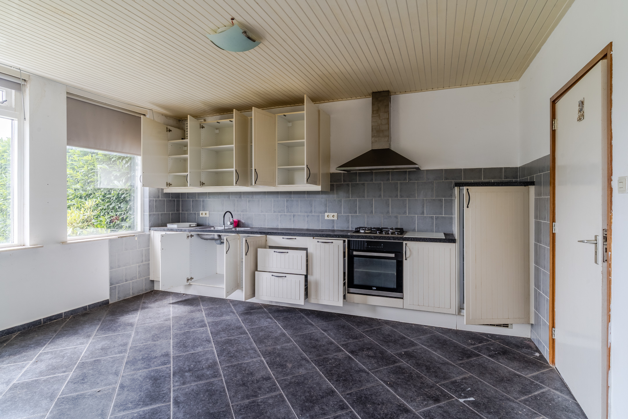 Op de begane grond bevindt zich een ruime hal met meterkast (1976) die toegang geeft tot de woonkamer en de woonkeuken. De woonkamer heeft een prettige lichtinval. De keuken, die dateert uit de jaren negentig, is praktisch ingericht en biedt voldoende ruimte. Aansluitend vind je een hal met toilet, een eenvoudige badkamer met douche en wastafel, en een ruime bijkeuken met toegang tot de buitenruimte. Op de eerste verdieping zijn vier slaapkamers aanwezig en een extra berging met wasbak.